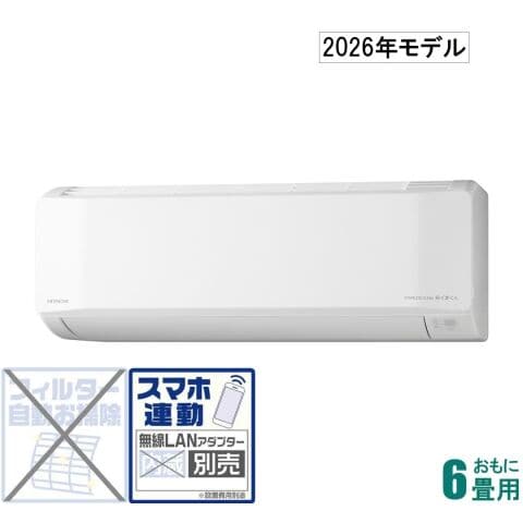 日立 【2026年モデル】【標準工事セットエアコン】 白くまくん おもに6畳用 (冷房:6~9畳/暖房:5~6畳) Eシリーズ (スターホワイト) RAS-ER2226S-W 【返品種別A】