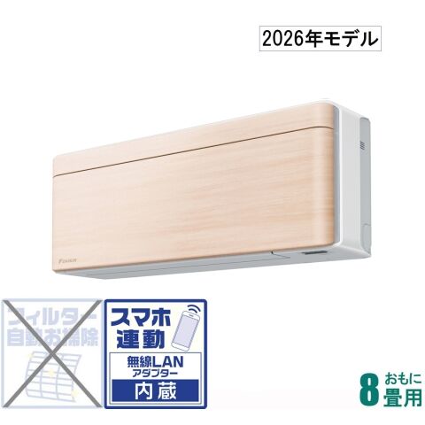 ダイキン 【2026年モデル】【標準工事セットエアコン】risora(リソラ) おもに8畳用 (冷房:7~10畳/暖房:6~8畳) SXシリーズ(ナチュラルウッド) S256ATSS-C 【返品種別A】