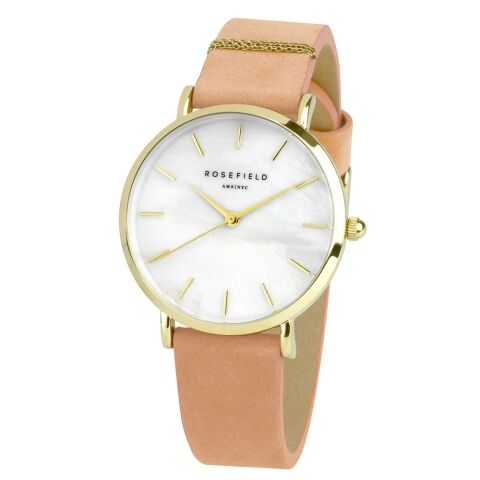 - カラー:文字板・ホワイト系、ケース・ゴールド系、バンド・ピンク系