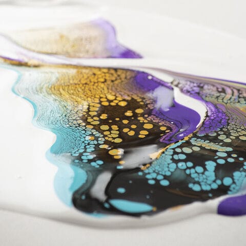 ◆ポーリング(フルイドアート)は、色同士が混ざり合わなく、マーブリング模様などができるアート技法です。