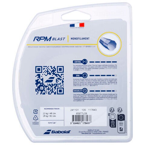 共ポリエステルが使われているため、バボラのRPMシリーズは、非常に耐久性に優れたモノフィラメントストリングです。