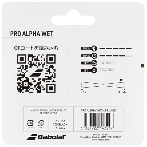 BabolaT(バボラ) オーバーグリップ プロ アルファ ウェット 3本入り(ブラック) 653054-105 【返品種別A】