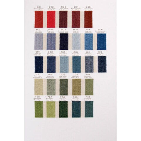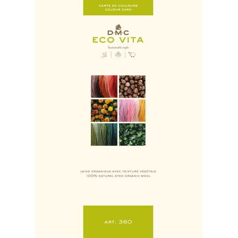 ◆DMC刺繍糸エコ ヴィータ360 天然染色クルーエルウール刺繍糸の、各色実物糸サンプルの色見本帳です。
