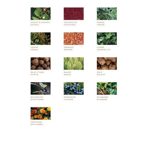 ◆クルミ、ルバーブ、インディゴ、セイヨウネズなど、全て天然染料から作られたカラーパレット。
