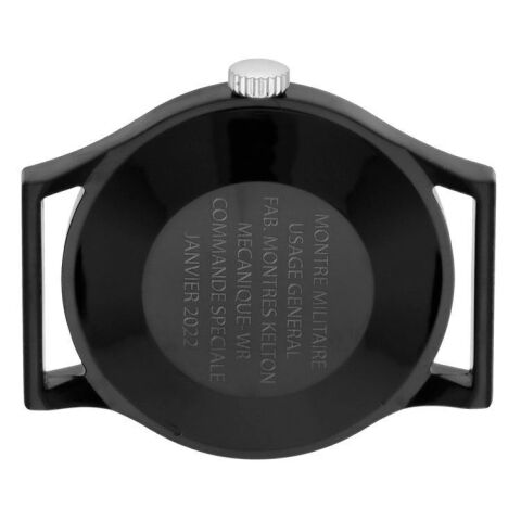 ケース裏には軍用規格である旨の記載が入っていた史実から、今回の復刻ではフランス語でブランド名や製造年月を刻印しています。
