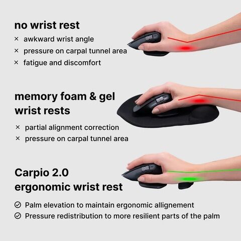 Carpioは、長時間のPCでの作業において、手首をサポートし、安定させることができます。