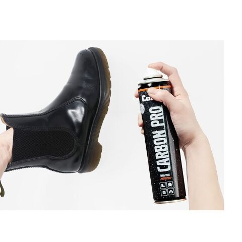 ◆新技術「カーボンテクノロジー」により、スプレーすると耐摩耗性や伸縮性を有した、カーボン繊維のような網目状の保護膜を対象物の表面に構成し、素材を水や汚れから守ります。