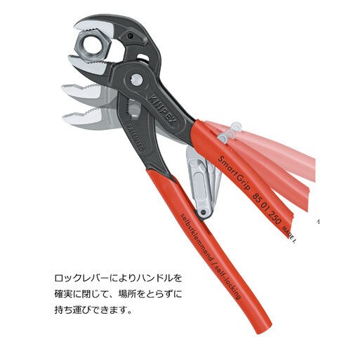 クニペックス スマートグリップ ウォーターポンププライヤー 250mm (台紙付き) KNIPEX 85 01 250 【返品種別B】