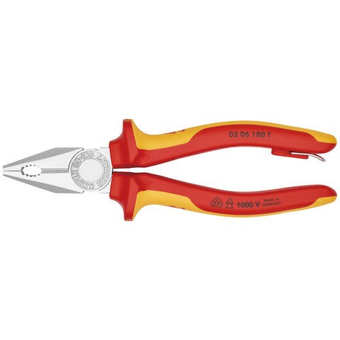 クニペックス 絶縁ペンチ 1000V 180mm 落下防止 (シェルパック) KNIPEX 03 06 180 T 【返品種別B】
