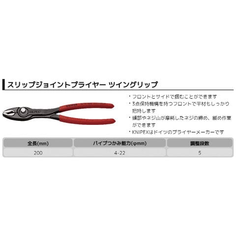クニペックス スリップジョイントプライヤー ツイングリップ 全長200mm (台紙付き) KNIPEX 82 01 200 SB 【返品種別B】