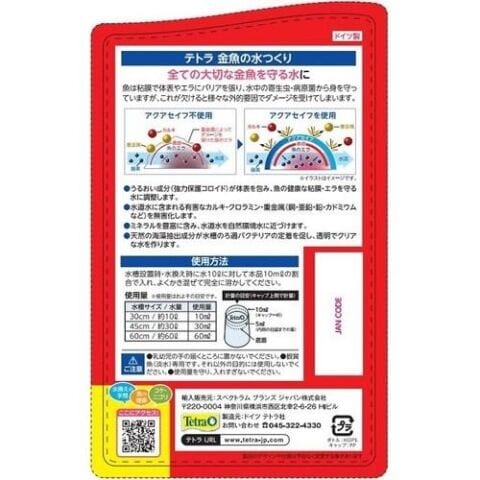 [水槽サイズ]45cm [水量]約30L [アクアセイフ使用量]15ml [金魚・メダカの水つくり、グッピー・ベタセイフ使用量]30ml