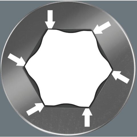 ◆Wera独自のHex-Plusと呼ばれる面接触構造により、六角ねじ穴の内側を傷めず、ねじの長寿命化に貢献します。