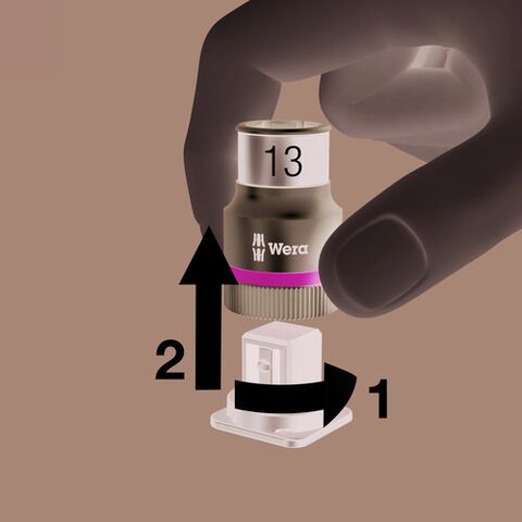 ◆ベルトに固定されたソケットはツイストすることで取り外し、取り付けが簡単です。