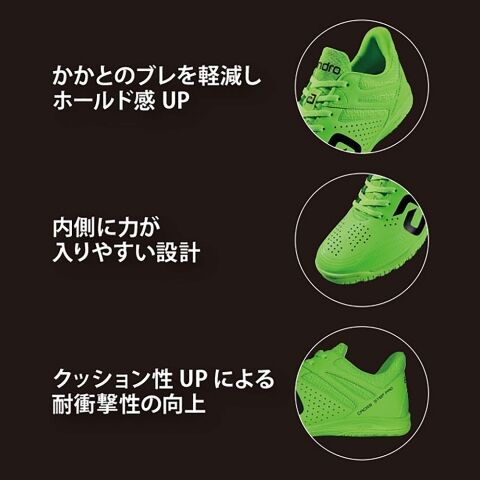 ◆かかとのブレを軽減しホールド感UP、内側に力が入りやすい設計、クッション性UPにより耐衝撃性の向上