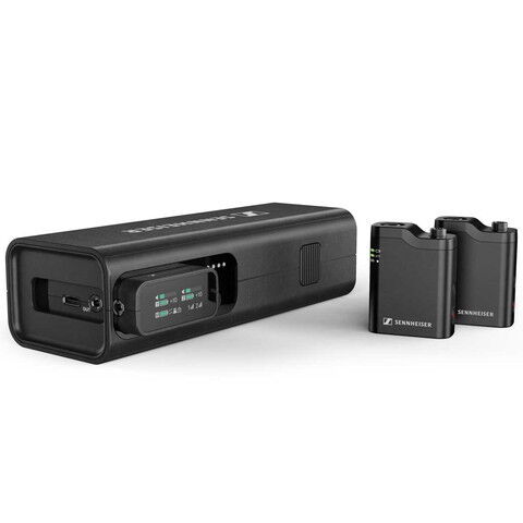 2チャンネルの2.4 GHzレシーバー、2つのクリップオンマイク、携帯型インタビューマイクとしても機能する超ポータブル充電バーに収納された汎用性の高い取り付け・接続アクセサリーが付属しています。