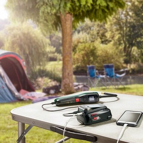ボッシュDIYガーデンツール共用18Vバッテリーで使えるコードレスUSBアダプターです。