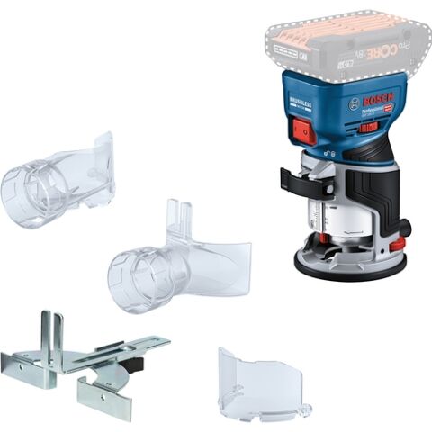 - 付属品:6mmコレット、両口スパナ(13mm/17mm)、平行ガイド、防じんカバー、吸じんアダプター(溝切加工用、面取り加工用)