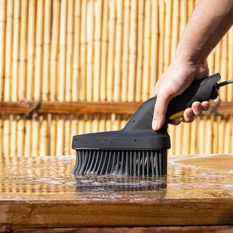 また、ブラシが噴射の水しぶきを抑え水の飛び散りに悩まされることなく清掃できます。