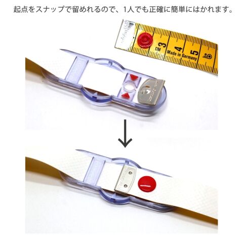 ◆起点の部分にスナップボタンが仕込まれているので、ずれることなく正確にサイズを測ることができます。
