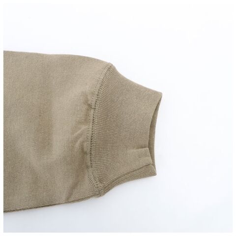 シンプルで着回しやすい無地タイプ。首元のタグがアクセントになって、こなれたお洒落感を演出。
