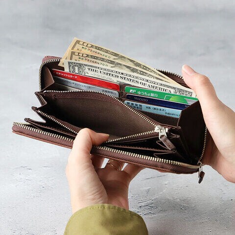 お札入れ3ヶ所・カード入れ13ヶ所・ジップ小銭入れ1ヶ所・フリーポケット2ヶ所・バックポケット1ヶ所と使い勝手も抜群。