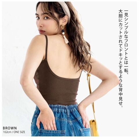 バックは大胆なオープンデザイン。背中が大きく開くトップスと重ね着してもすっきりと着こなせちゃう!