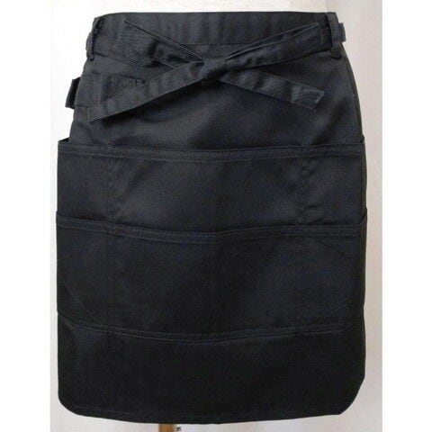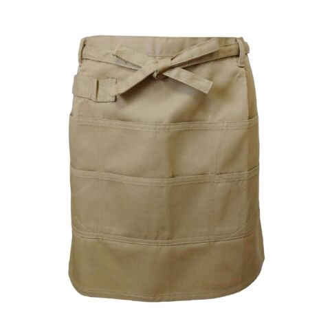 ◆エプロンのフロントには仕切りタイプのオープンポケットが6つに、ペン挿しも3つ配置。