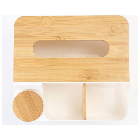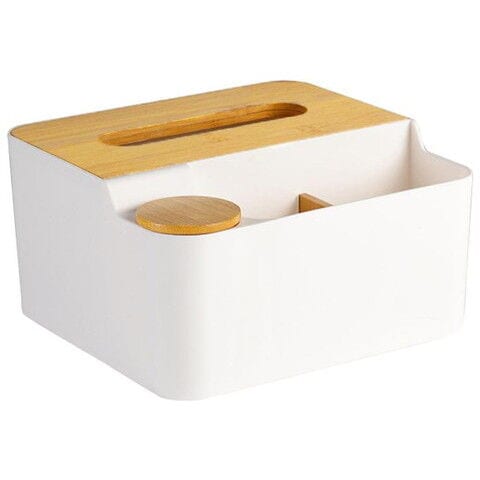 ティッシュケース部分には、ソフトタイプのティッシュをたっぷり詰め替えてストックできるので、リビングにはもちろん、サニタリースペース用の小物入れにも最適。