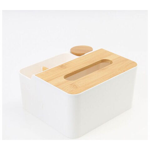 ◆ナチュラルな木製パーツとシンプルなデザインでリビングがスッキリ! リモコンラック付きティッシュケース。