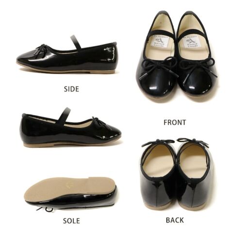 靴表面のつやつやのエナメル加工とリボンモチーフがかわいらしいデザイン!
