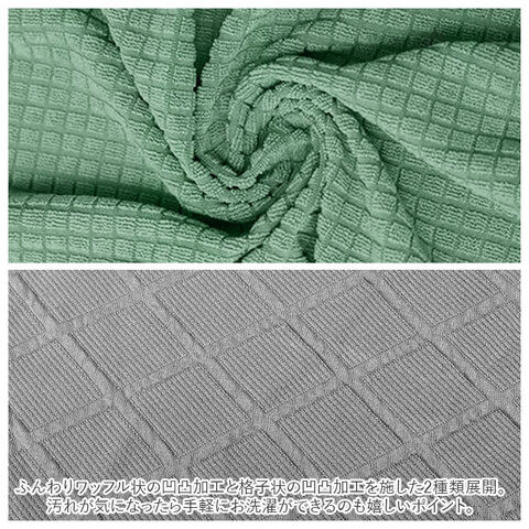 生地表面にはふんわりワッフル状の凹凸加工を施し、優しい肌触り。