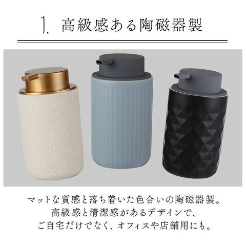 ◆マットな質感と落ち着いた色合いの陶磁器製・泡ソープディスペンサーが登場。