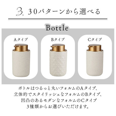 ◆ポンプ部はマットゴールドまたはマットグレー等、計20パターンの中からお好みの組み合わせがチョイス可能♪(※各カラーによりデザインやカラーの組み合わせが異なります。