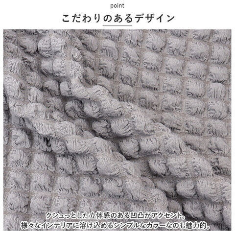 クシュっとした立体感のある凹凸がアクセント。様々なインテリアに溶け込めるシンプルなカラーなのも魅力的。