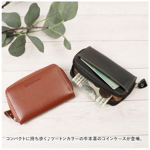 コンパクトに持ち歩く! ツートンカラーの牛本革のコインケースが登場。