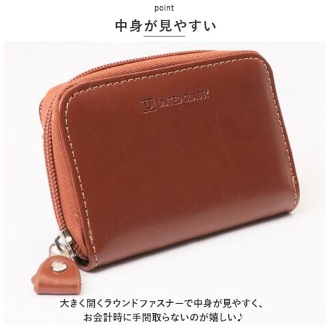 大きく開くラウンドファスナーで中身が見やすく、お会計時に手間取らないのが嬉しい!