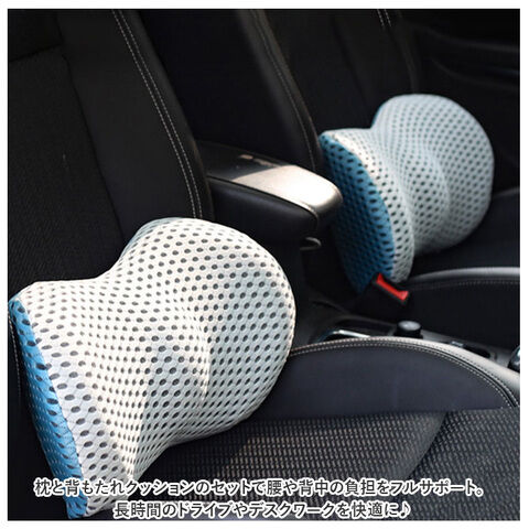 低反発素材のクッションが体圧を分散。さらに中心の突起が身体をサポート。長時間の運転やデスクワークによる、首・肩・腰・背中への負担を軽減。