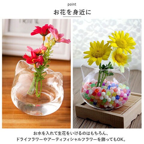 お水を入れて生花をいけるのはもちろん、ドライフラワーやアーティフィシャルフラワーを飾ってもOK。