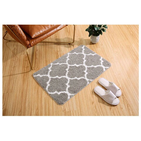バスルーム入り口にちょうどよい40cm×60cmの程よいサイズ感とシンプルなテキスタイル柄で、サニタリースペースだけでなくリビングやキッチンなど、お好みの場所でアレンジ自在。