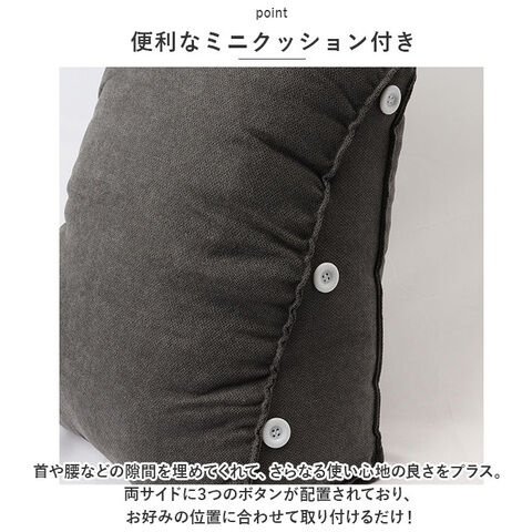 三角クッションの片サイドに、スマホやリモコンなどが入るミニポケット付き。どこ行った? となりがちなアイテムをしまっておけて安心。