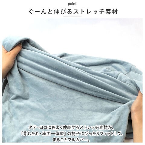 タテ・ヨコに程よく伸縮するストレッチ素材が、「背もたれ・座面一体型」の椅子にぴったりフィットして、まるごとフルカバー。