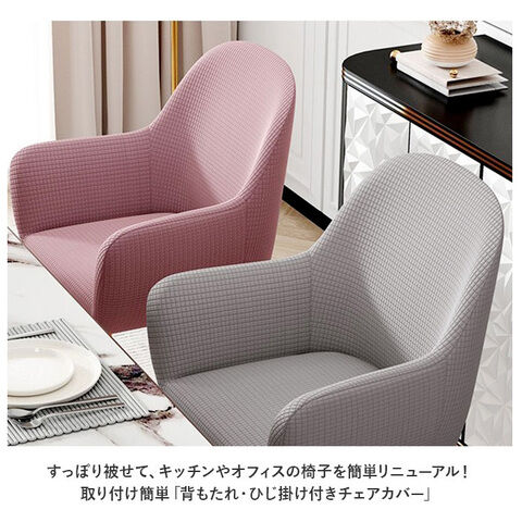 ひじ掛け付きタイプの椅子にも対応しているので、「ひじ掛け付きタイプのカバーがなかなか見つからないッ! 」と思っていた方に最適。