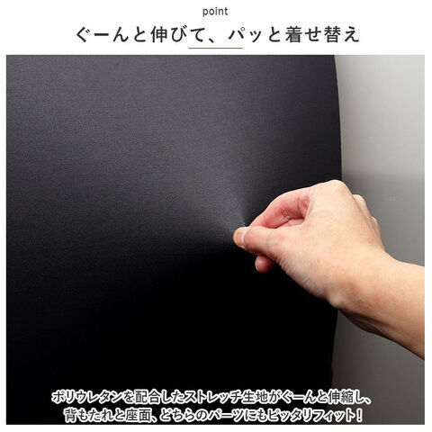 ポリウレタンを配合したストレッチ生地がぐーんと伸縮し、背もたれと座面、どちらのパーツにもピッタリフィット!