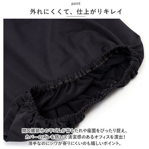 開口裾部分の平ゴムが背もたれや座面をぴったり捉え、カバーのズレを防いで清潔感のあるオフィスを演出! 薄手なのにシワが寄りにくいのも嬉しいポイント。