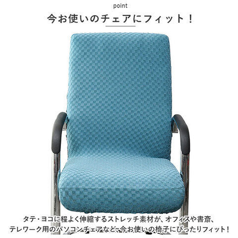 タテ・ヨコに程よく伸縮するストレッチ素材が、オフィスや書斎、テレワーク用のパソコンチェアなど、今お使いの椅子にぴったりフィット!