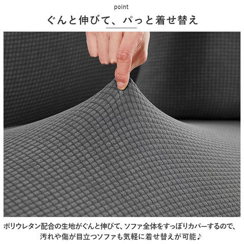 ポリウレタン配合の生地がぐんと伸びて、ソファ全体をすっぽりカバーするので、汚れや傷が目立つソファも気軽に着せ替えが可能♪