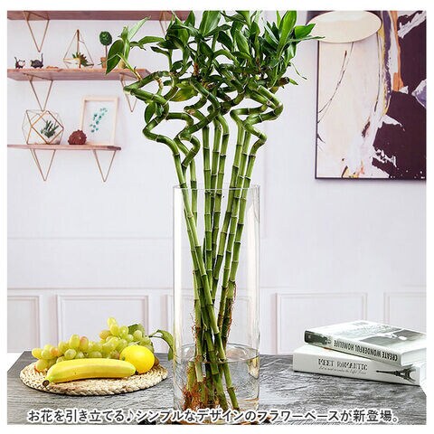 お花が映え、どんなインテリアにも馴染むクリアカラーとシンプルな円柱形。