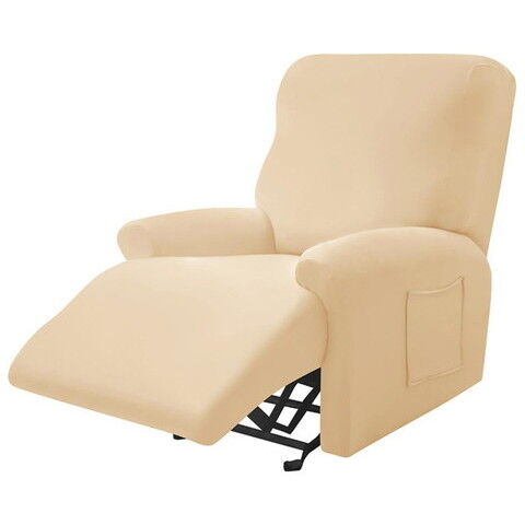 背もたれカバー×1枚、座面カバー×1枚、ひじ掛けカバー×2枚。合計4枚のカバーをリクライニングチェアのそれぞれのパーツに装着する4ピース構成。