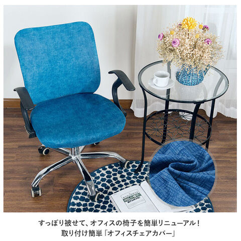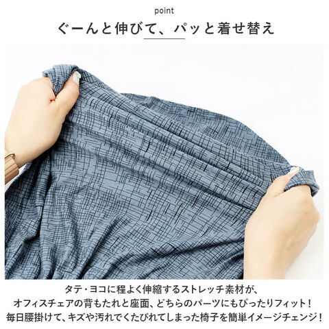 タテ・ヨコに程よく伸縮するストレッチ素材が、オフィスチェアの背もたれと座面、どちらのパーツにもぴったりフィット! 毎日腰掛けて、キズや汚れでくたびれてしまった椅子を簡単イメージチェンジ!