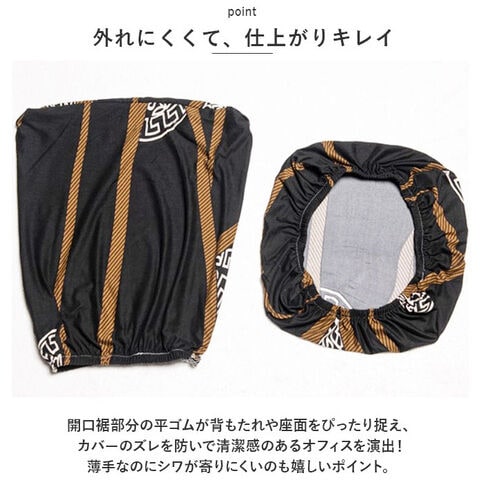 開口裾部分の平ゴムが背もたれや座面をぴったり捉え、カバーのズレを防いで清潔感のあるオフィスを演出! 薄手なのにシワが寄りにくいのも嬉しいポイント。